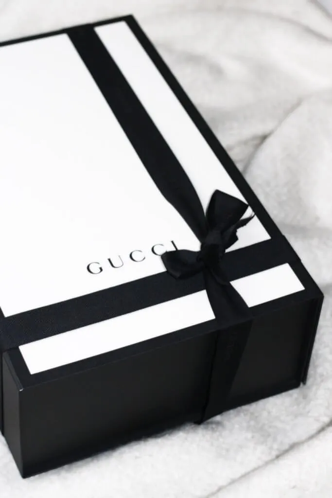 بسته بندیهای جدیدی که الان میبینی، همونایی هستن که مینیمال، شیک و سیاه و سفید طراحی شدن؛ یه جعبه ساده و تمیز با لوگوی گوچی با همون فونت خاص. شیک، جمعوجور و دوستدار محیطزیست.